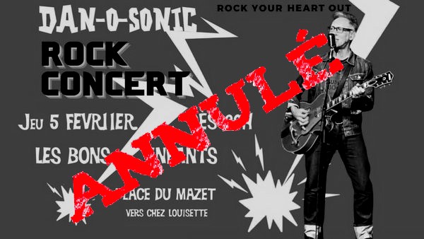 le concert de Dan-O-Sonic aux bons enfants du jeudi 5 février est annulé pour des raisons indépendantes de ma volonté. Je vous dis à bientôt pour d'autres RV...