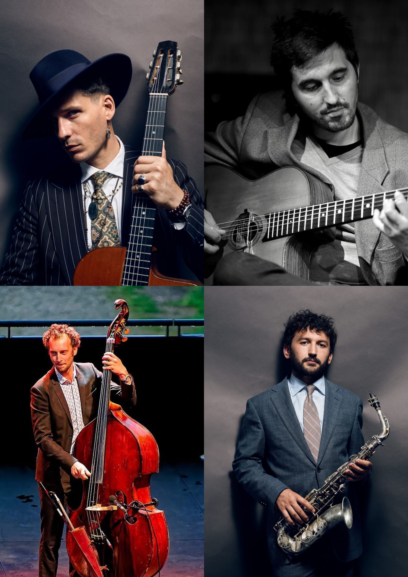 À leurs côtés, deux complices de choix : Camille Wolfrom à la contrebasse et Gaspard Baradel au saxophone alto.. Née de nuits d’improvisaton jusqu’au petit jour lors du Festival Django Reinhardt, cette formaton éphémère mais inspirée partage avec joie son interprétaton du jazz français. Le quartet se réunit autour d’un répertoire des plus classiques du style, revisité dans une approche contemporaine.