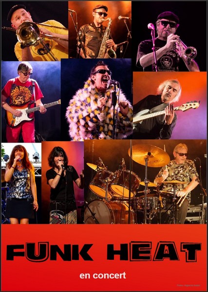 Composée de musiciens venant d’univers différents (Rock, jazz, World, Musique de Magma...), cette formation explosive mettra le feu sur scène avec les meilleurs morceaux du genre. Leurs concerts sont le fruit de chacune de leurs influences et de leurs folies réunies... Une section rythmique guitare basse batterie, une section trompette trombone saxophone ténor, deux choristes et un chanteur survolté aux commandes du vaisseau FUNK HEAT.