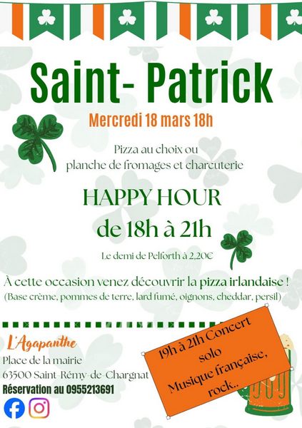 A l'occasion de la Saint-Patrick, un musicien jouera sur place de 19h à 21h