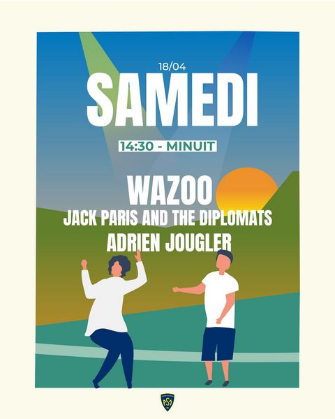 Programmation : 14h45-16h15 Jack Paris and the Diplomats (Blues Électrique) - 16h35-19h Match ASM Clermont Auvergne – LOU Rugby - 19h-20h30 Wazoo (Folk Auvergnat) - 20h30 – DJ Adrien Jougler