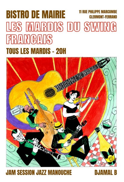Chaque mardi, le Bistro de la Mairie ouvre sa petite salle à une jam 100% swing & jazz manouche Un moment chaleureux, vivant, où les musiciennes et musiciens ouvrent la soirée avant que la scène ne s’ouvre complètement : instruments accordés, impros libres, énergie collective, et ce petit frisson propre aux soirées où tout peut basculer