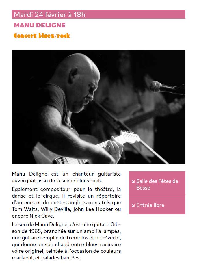 Concert : Manu Deligne Salle des fêtes 63610 Besse-et-Saint-Anastaise