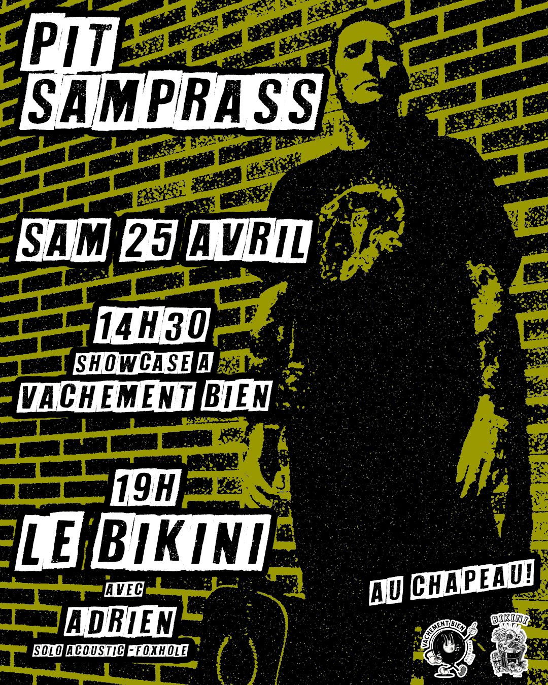 Pit Samprass, au chant et à la guitare acoustique, interprète de façon personnelle des reprises de classiques punk rock mais aussi quelques belles surprises. De NOFX à Johnny Cash, en passant par Suzanne Vega ou Serge Gainsbourg, l’ex guitariste et vocaliste des mythiques Burning Heads, livre une performance en toute humilité, à la fois profonde et touchante, teintée d’une touche d’humour.