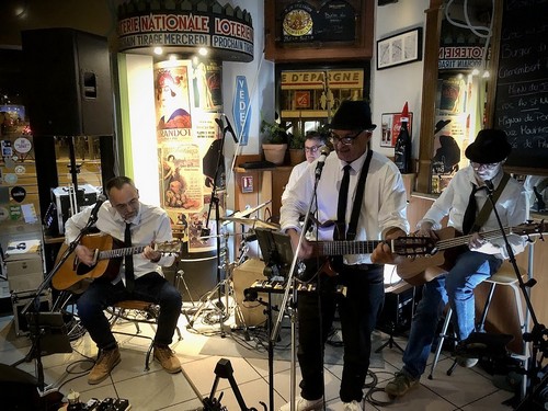 Groupe de 4 musiciens de reprises de tous genres qui vont du blues, à la pop en passant par le rock, le reggae .... Nous balayons donc toutes les décennies depuis 50/60 ans. Cela donne finalement un mélange de BBKing, Chris Isaak, Calvin Russel, Eric Clapton, White Stripes, Bob Marley, Neil Young, The Beatles et j'en passe...bref, un beau mélange qui plaira au plus grand nombre.