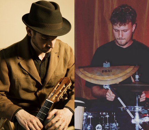 "Ce duo revisite les plus belles pages de la chanson française en les mêlant aux rythmes chaloupés d’Amérique latine. Des volcans d’Auvergne à la baie de Rio, le voyage se fait en musique au fil des mots de Nino Ferrer, Georges Brassens et consorts. La guitare déploie des harmonies colorées aux accents rock et psychédéliques, portée par une batterie à la fois dansante et puissante. Une rencontre originale entre poésie française, rythme latin et énergie rock."