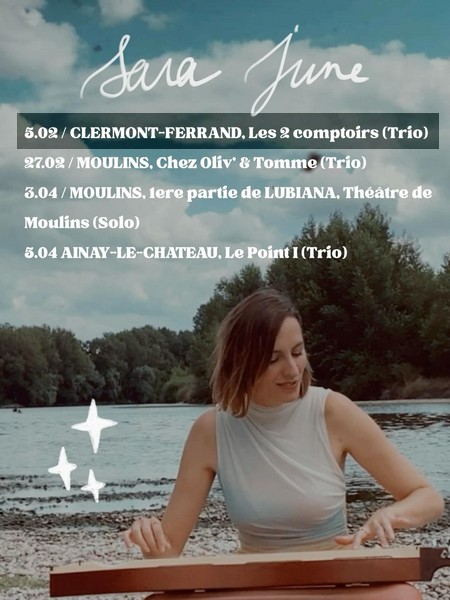Auteure, compositrice et interprète depuis ses dix ans, c’est avec son autoharpe et sa guitare que Sara June vous prend par la main et vous embarque dans son univers folk de « grande gosse » ...