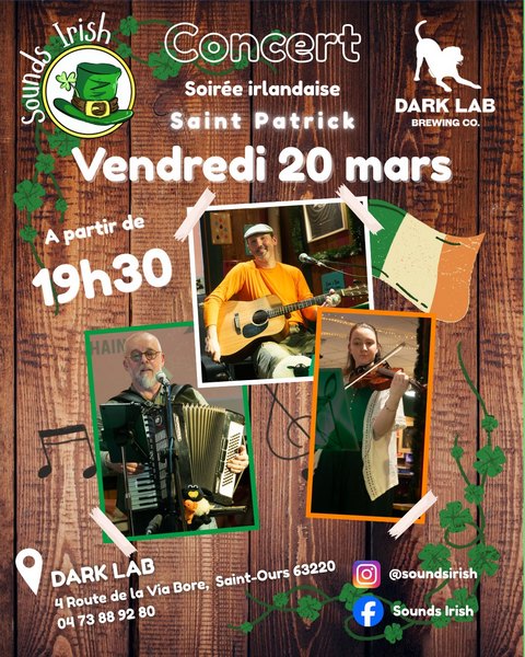 Un concert live de musique irlandaise avec Sounds Irish à 20h – prépare toi à taper du pied dans une ambiance de folie !