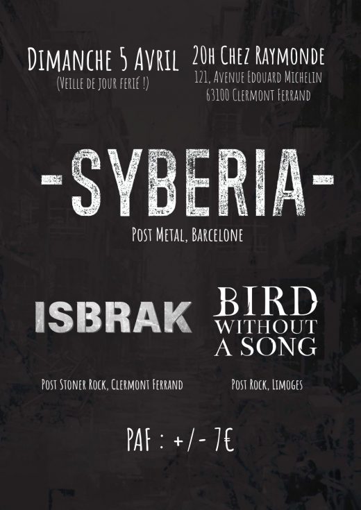 Syberia est un groupe de Post Metal instrumental formé a Barcelone en 2010. Les 4 membres du groupe, Oscar (Guitare), Jordi (Guitare/Synthé/Programmation), Quim (Basse) et Manel (Batterie) ont 5 albums a leur actif : Drawing A Future (2012), Resiliency (2016), Seeds Of Change (2019), Statement On Death 2022 et Quan Tot S'apagui (2026). Durant ces 15 ans ils ont tourné a de nombreuses reprises en Espagne ainsi que dans toute l'Europe....